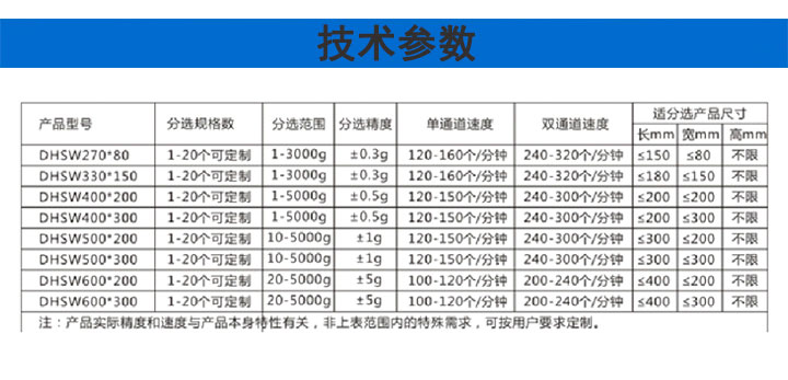 分選范圍 | 1-3000g | 分選精度 | ±0.3g |